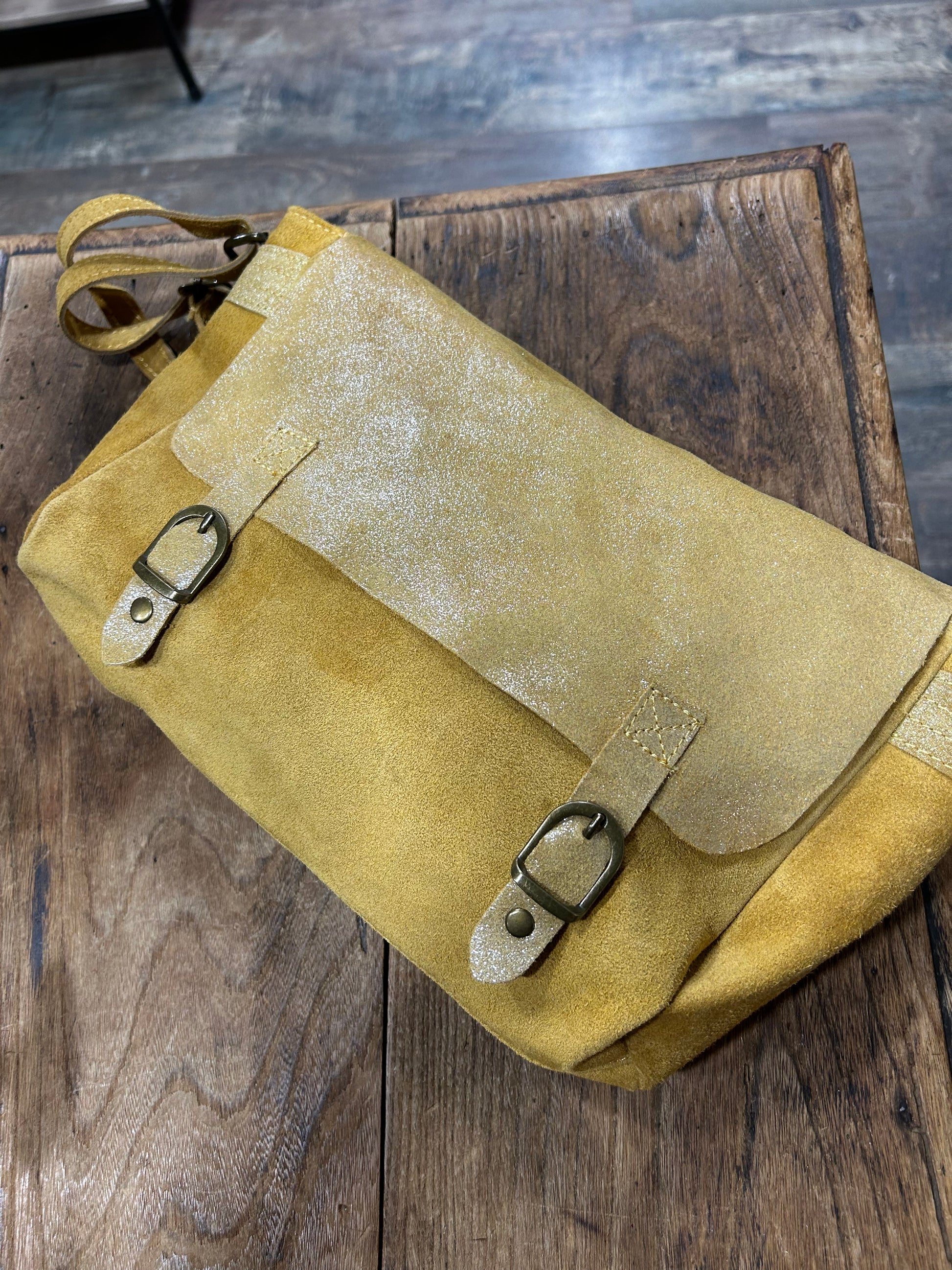 Sac en cuir daim bandoulière rabat et fermeture 29x20