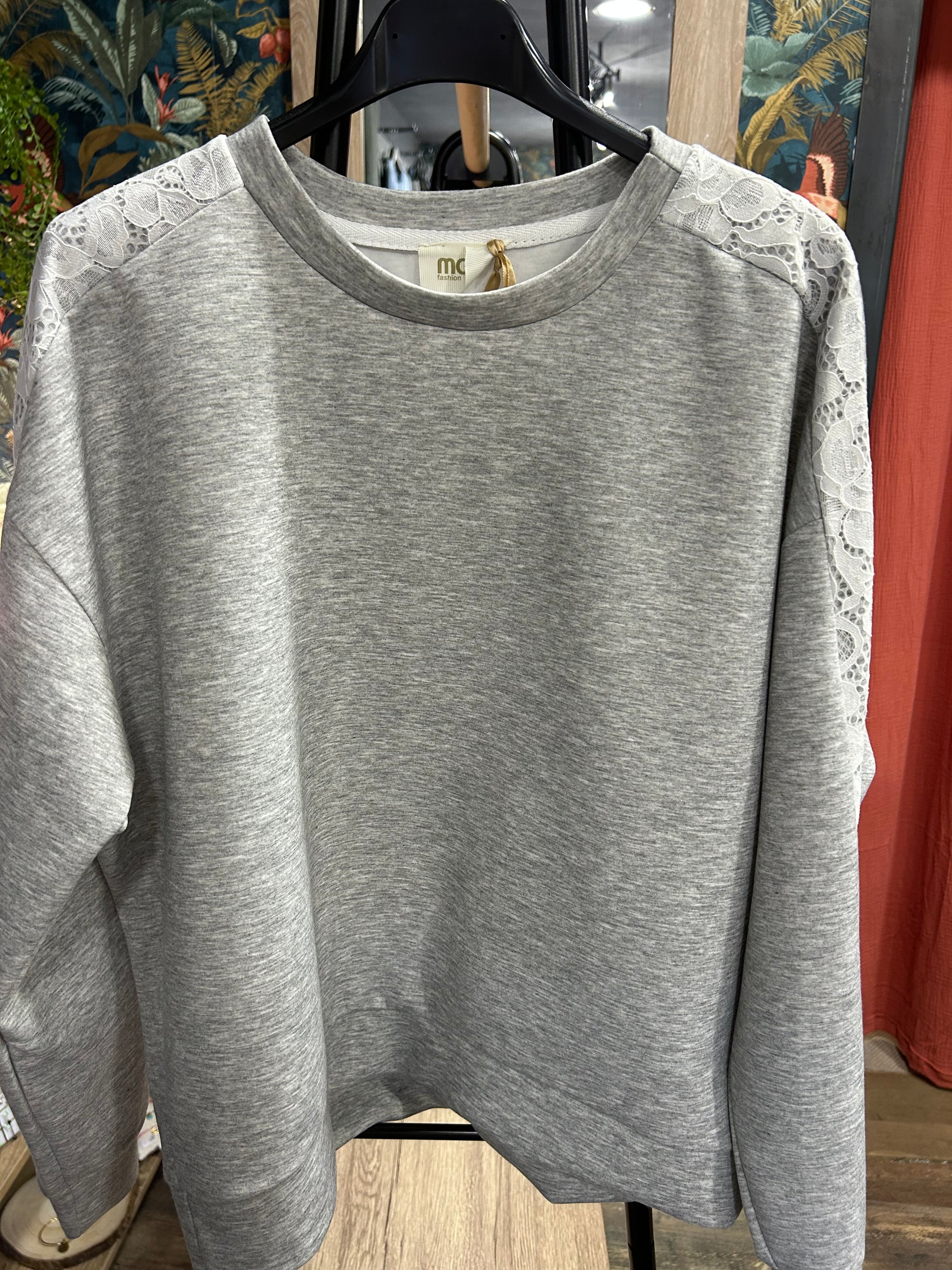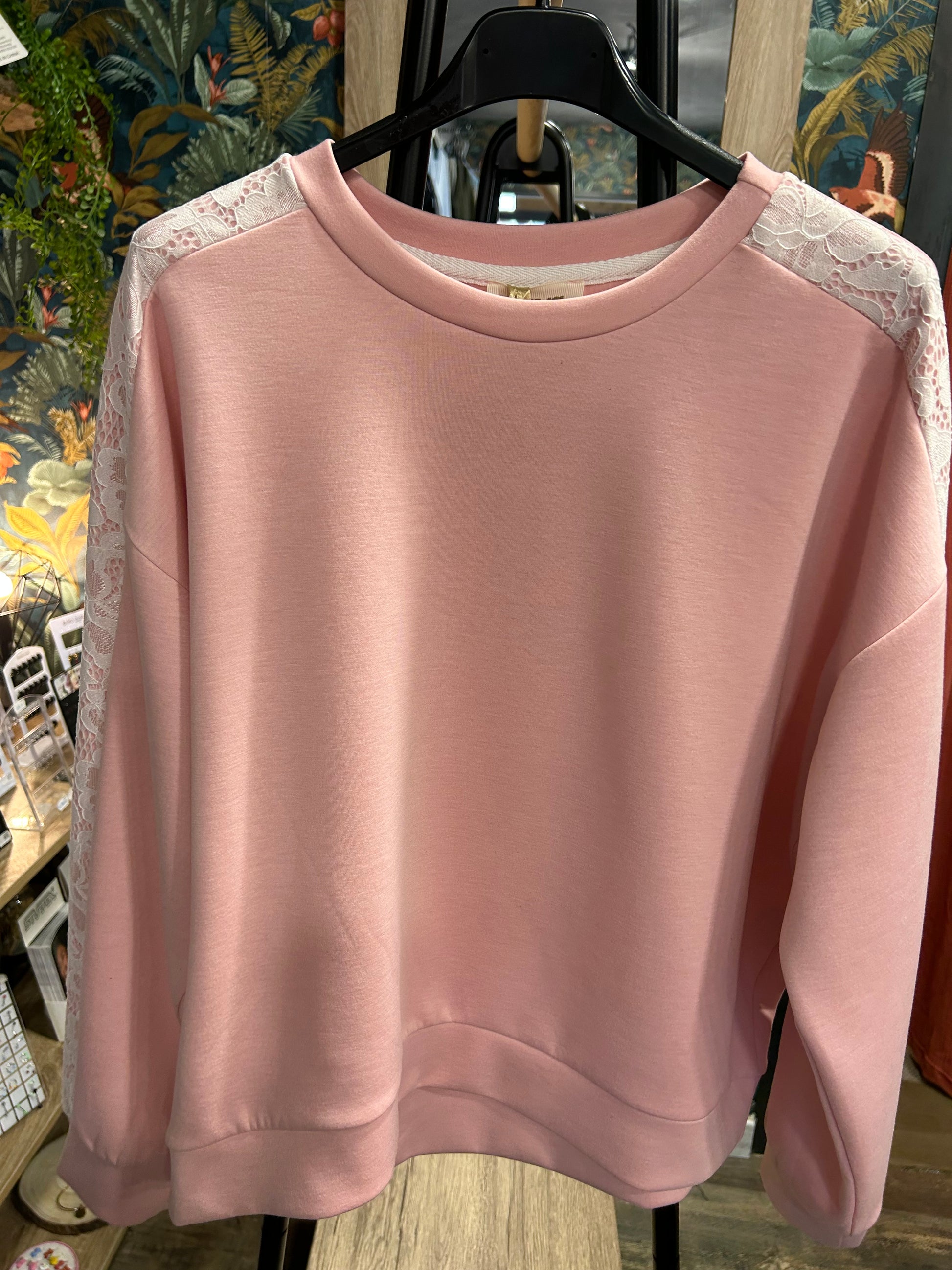Sweet décontractée avec dentelle sur les manches, taille unique, 100 % polyester, va du 34 au 42