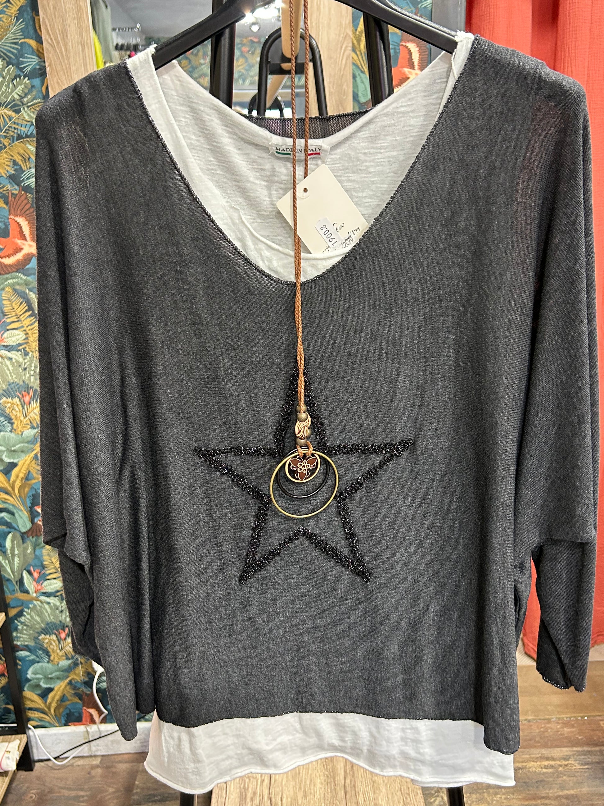 T-shirt manches longues superposé avec sous un débardeur blanc, 100 % coton. Taille unique, va un 36 jusqu’à 44